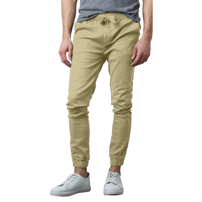 Stock up on premium Men's Stretch Twill Drawstring Joggers in Khaki, designed for both style and comfort.